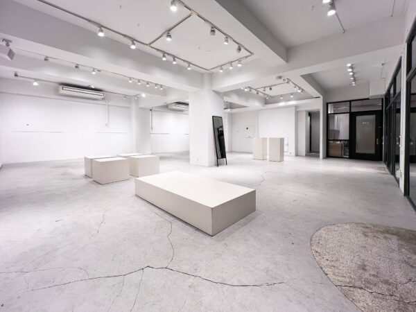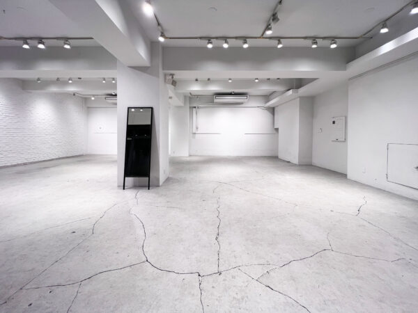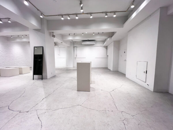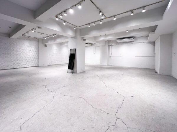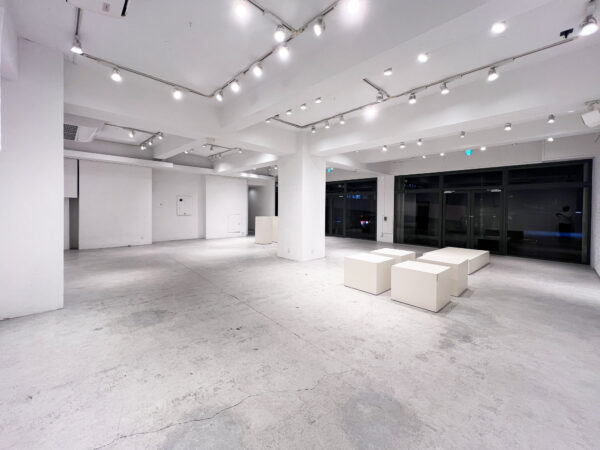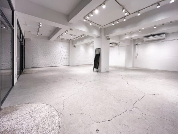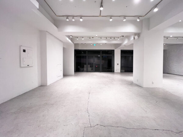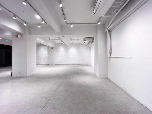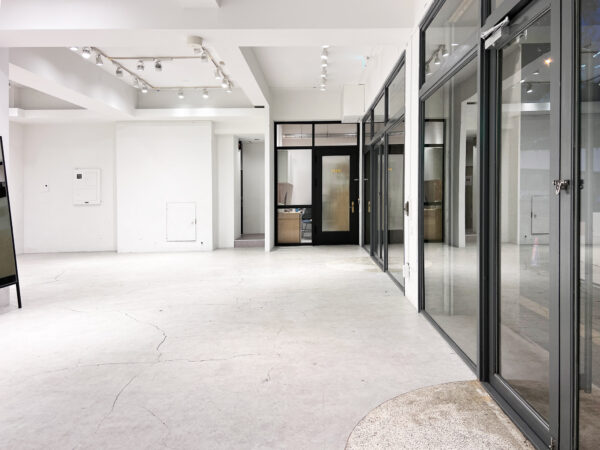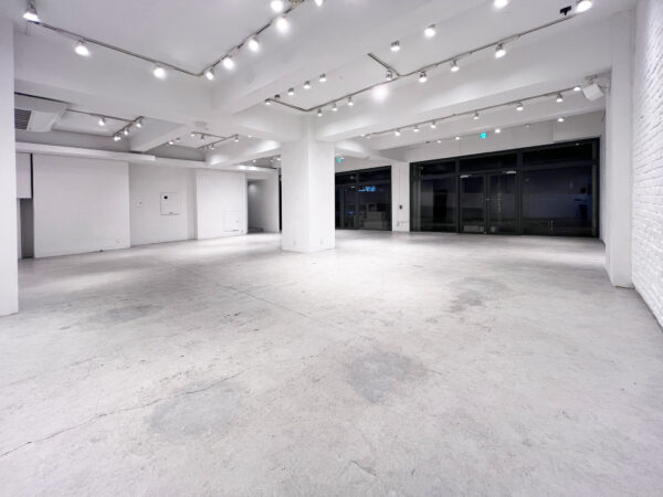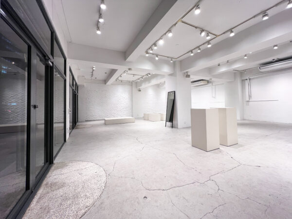 1963年竣工のビンテージビルの1F。3.3mの天井高、135㎡の白を基調とするホワイトキューブ空間。装飾や展示など利用者の創造性で自在に変化する空間になるようリノベーションしました。展示会、受注会、個展、グループ展、ポップアップ、トランクショー、販促イベントやPRとして、アパレル展示会などに最適です